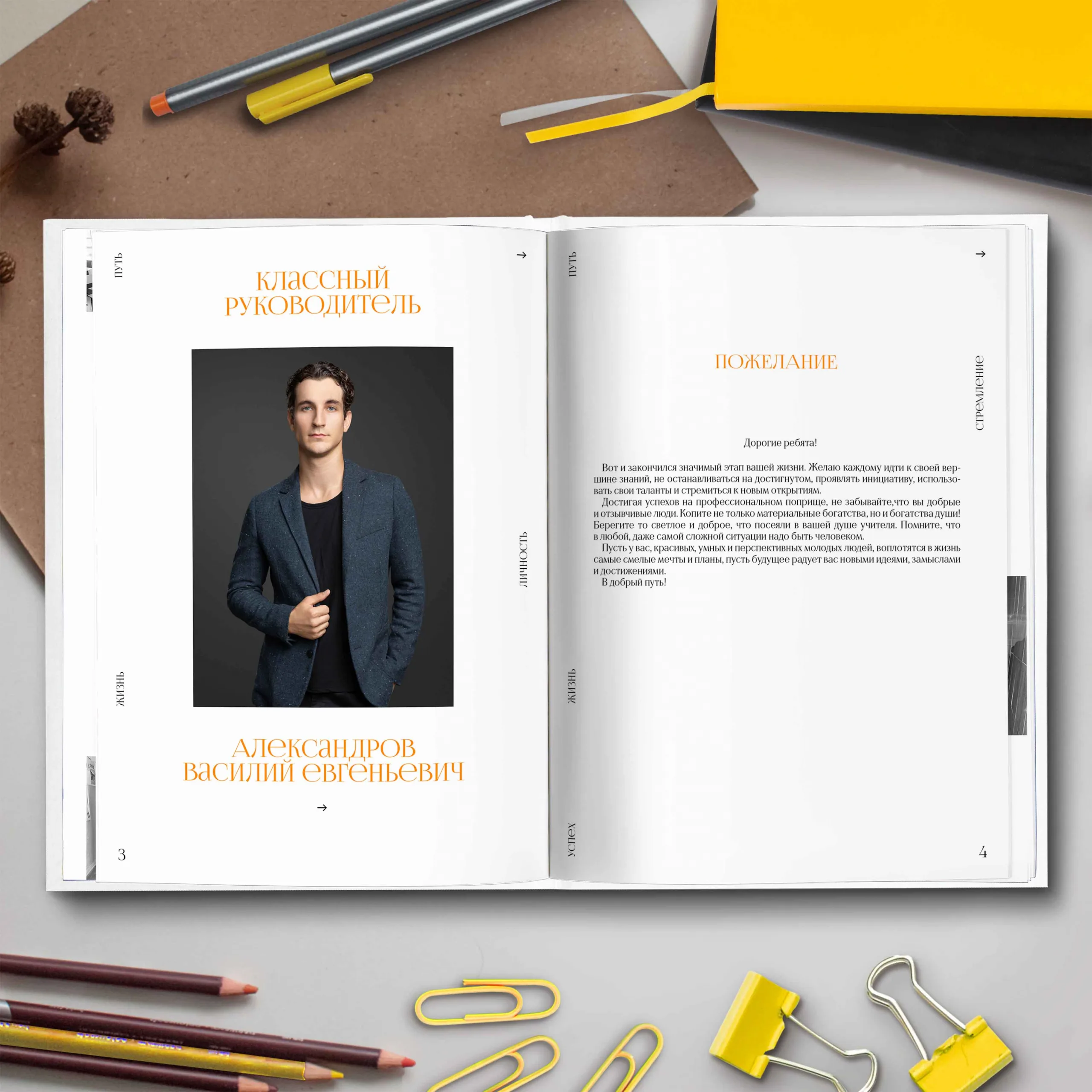 4ый разворот и далее — личные страницы учеников с личной характеристикой