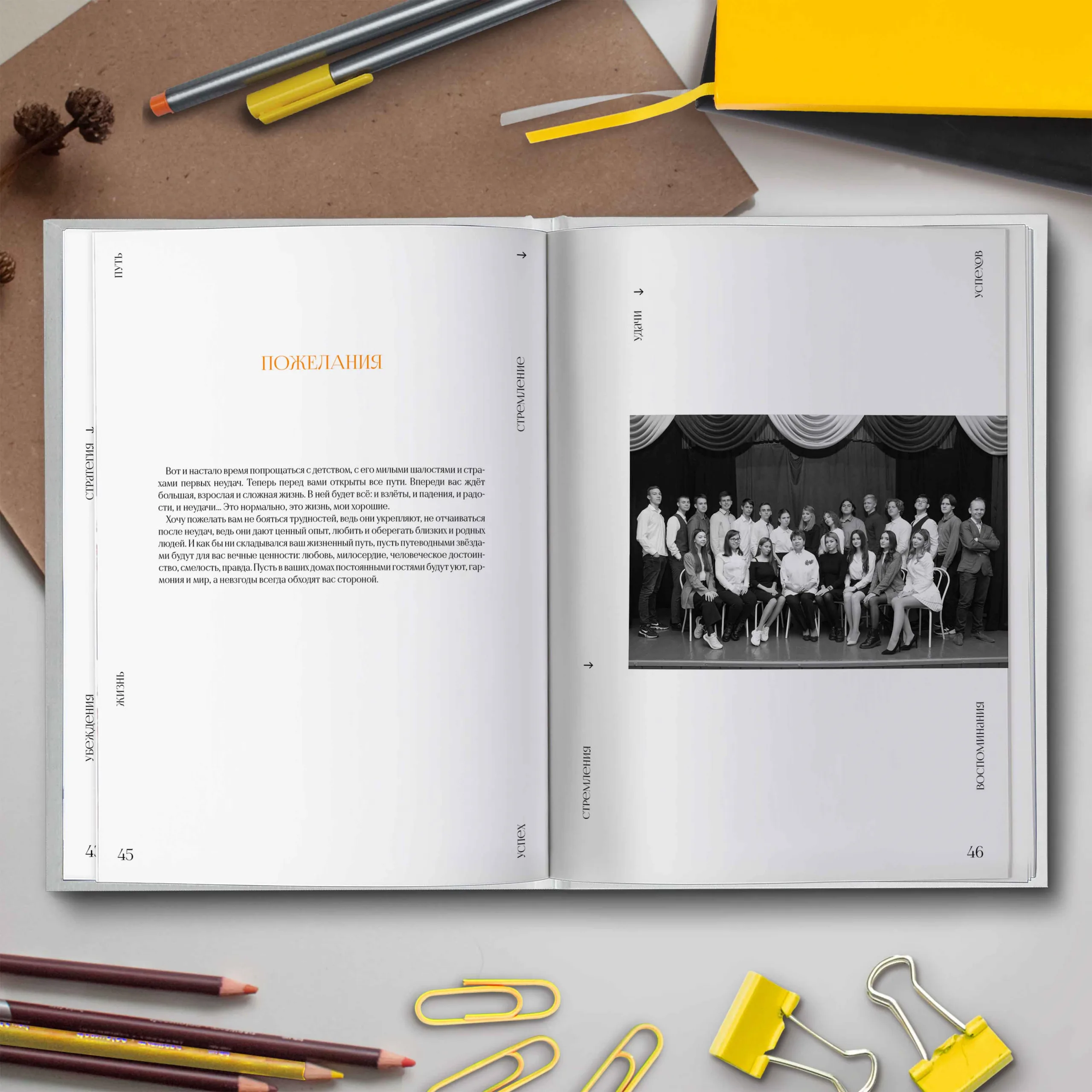 1ый разворот — форзац с использованием случайных фотографий общего репортажа